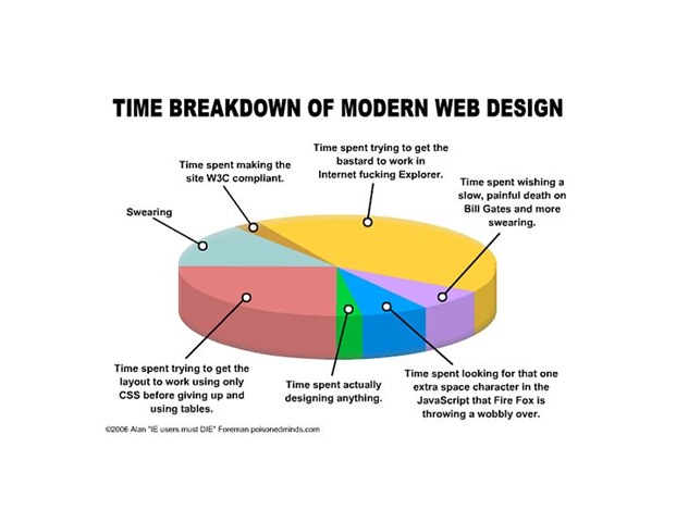EIne gar köstliche (und teilweise recht zutreffende :-) ) Statistik, wie Website-Projekte aufgebaut sind. Quelle: https://www.i-marco.nl/weblog/images/breakdown.png