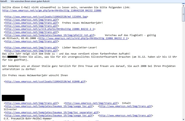 Und wieder so ein unhübscher Newsletter (von Martina auch hier beschrieben) eines großen Baumarktes - der natürlich im Junk landet: