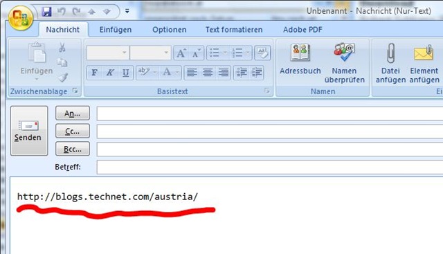 Kopieren Sie eine URL aus Ihrem favorisierten Browser (ja, es geht nicht nur im IE sondern auch in Firefox & Co, OneNote und jedem Programm, das mit der Zwischenablage funktioniert ;-) ) mit STRG + c in die Zwischenablage.