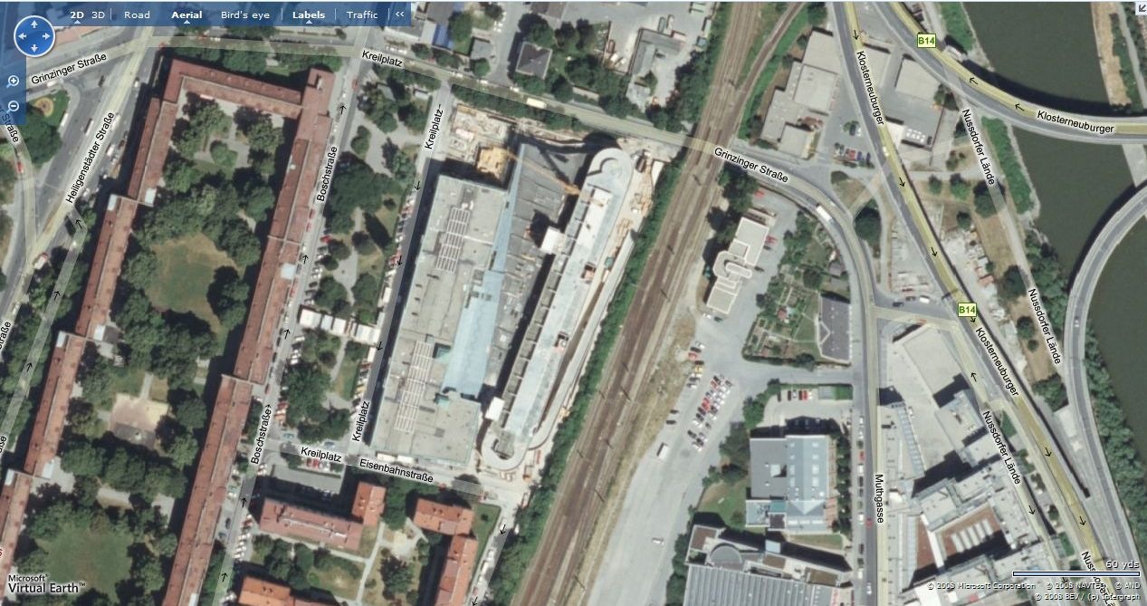 Auf jeden Fall stimmt die Aerial Map mit der Road Map überein und es werden sogar Einbahnen angezeigt, ich habe das gleich mit meiner Büroadresse in Wien am Kreilplatz überprüft: