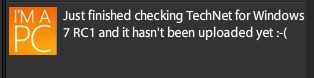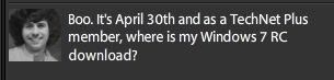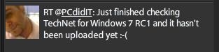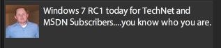 Für alle Technet Plus Abonnenten gibt es ja ab heute, 30. April erfreulicherweise bereits den RC1 von Windows 7 zum Download, mein Kollege Toni Pohl hat darüber ja schon berichtet.