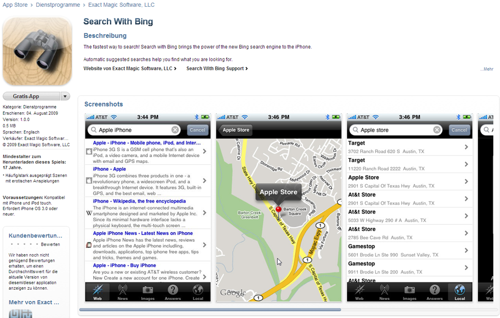 Bing gibt es nun auch fürs Apple iPhone! Die Applikation ist gratis: