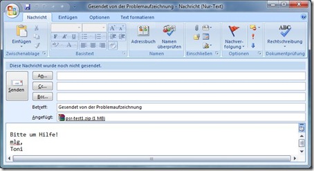 Genauso kann die Aufzeichnung auch gleich aus der Problemaufzeichnung versendet werden: