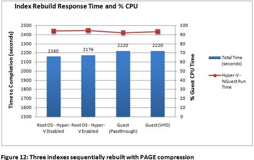 Spannender: Index Rebuild (a very common database operation): Leichter Vorteil der nativen Maschine. “Very little overhead was observed when the same operation was run within the virtual machines.”