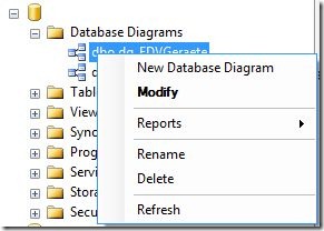 Jetzt habe ich aber aus aktueller Anforderung – die Diagramme sollten in eine neue Datenbank übertragen werden - einen brauchbaren Workaround zum Kopieren von Diagrammen in andere Datenbanken gefunden, und zwar auf codeplex.com Script SQL Server 2005 diagrams to a file von Craig Dunn. Eine sehr praktische Lösung.