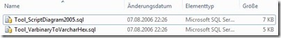 Es müssen beide SP´s erstellt werden. - Nun Aufrufen der SP Tool_ScriptDiagram2005 mit dem gewünschten Diagramm-Namen, z.B.: