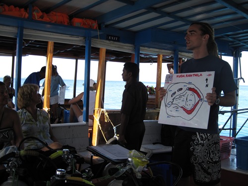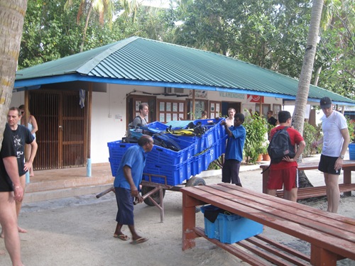 Die Tauchschule der „Euro Divers" wird von Thomas und Mike geleitet, als Tauchlehrer sind weiters Marion, Vanessa, Jörg und Chris (gerade auf Urlaub) tätig. Die meisten Taucher verwenden Nitrox (EAD 32), was aufgrund der vielen Thila´s (s.u.) sehr empfehlenswert ist. Also unbedingt vorher oder dort die Nitrox-Ausbildung machen, dann macht das Tauchen noch mehr Spaß.