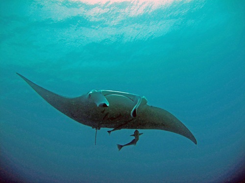 Die Fahrt zum „Manta Point" ist allerdings nur mit dem schnellen Boot empfehlenswert, denn mit dem Dhoni sind wir zwar nur 1,5 Stunden hin, aber etwa 2,5 Stunden zurückgetuckert. Und das ist mühsam. Dafür waren zu mindestens beim ersten Tauchgang auch Mantas dort.