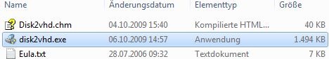 Nach dem Download wird das ZIP (705KB) entpackt, disk2vhd.exe ist nur 1.45MB groß: