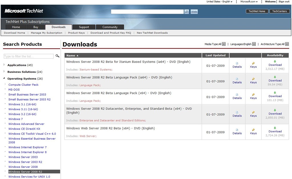 Seit Anfang Jänner ist Windows Server 2008 R2 Beta im TechNet Plus Abo downloadbar!