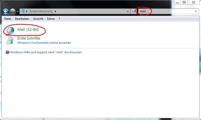 Die Lösung (für mich ebenso einfach wie zunächst unvermutet): In der Systemsteuerung nach “Mail” suchen - bringt das zuvor unauffindbare “Mail” zum Vorschein!