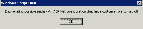 Starten Sie DetectCustomErrorsDisabled3.vbs (erfordert ADSI Unterstützung und IIS6 Management-Tools).