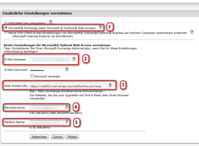 - Hier bitte Microsoft Exchange aussuchen.