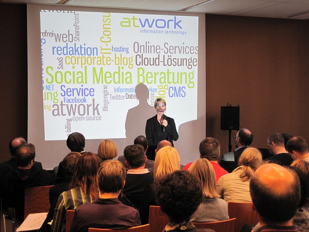 Martina Grom, CEO von atwork, erläuterte warum der Social Media-Auftritt wichtiger Bestandteil der Gesamtkommunikation ist – eine gute Strategie und Vorbereitung sind wesentliche Erfolgsfaktoren für eine gelungene Entdeckungsreise.