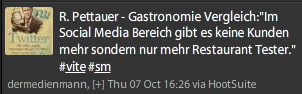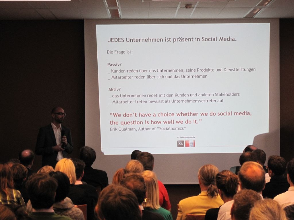 Werner Reiter, Leiter der externen Kommunikation der A1 Telekom Austria hielt einen Vortrag mit dem klingenden Titel “Geld zurück oder Twitter” über den „Kunden 2.0" und wie mit Kritik am Unternehmen am besten umzugehen ist.