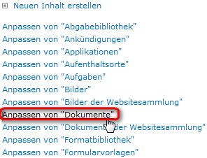 “Anpassen von Dokumente” – wenns um diese Dokumentbibliothek geht.