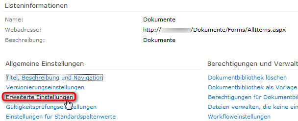 In den Dokumentbibliothek-Einstellungen zu “Erweiterte Einstellungen”.