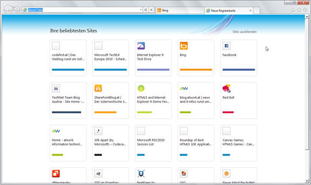Die nun beschriebene Funktion ist jedoch erst im letzten IE9 Preview 7 enthalten (die vorigen Funktionen sind bereits in IE9 Beta integriert):