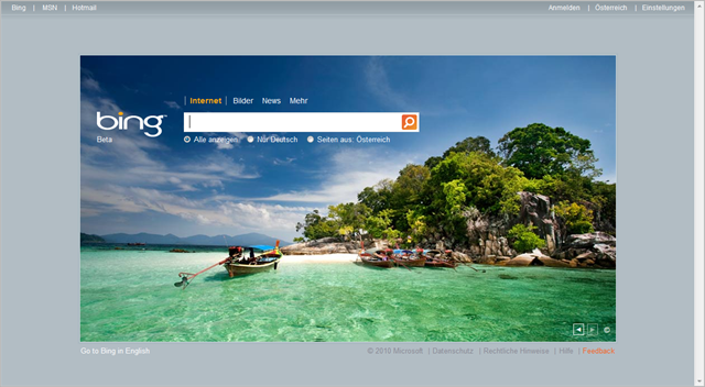 Testen wir mal mit bing.com: Heute wieder mal mit besonders hübschem (Urlaubs) Foto. (Woher weiß bing, dass ich auf Urlaub fahren möchte…?)