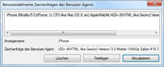 Stellen wir mal den User Agent auf Benutzerdefiniert: