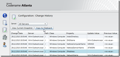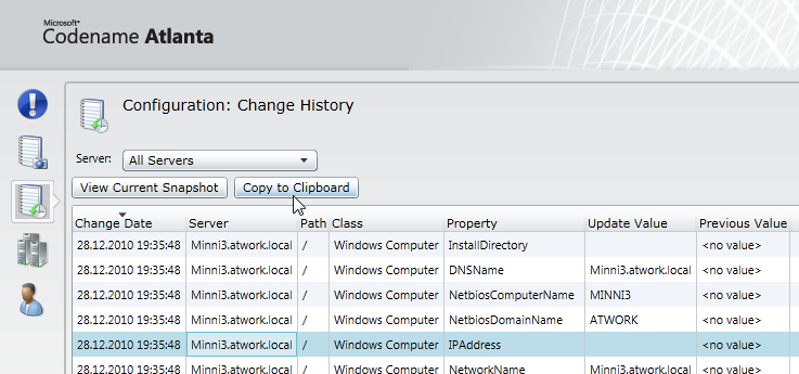 Configuration - Change History: Anzeige von historischen gesammelten Daten der überwachten Computer.