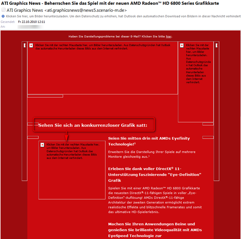 Nur, ich stelle mir immer wieder dieselbe Frage: Warum versenden so viele (auch große) Firmen HTML-Newsletter, die geblockt werden… wann lernen die dazu und bieten ihre Inhalte in besserer/alternativer Form an?