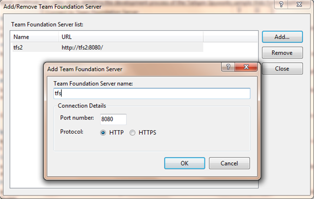 Damit dieser TFS-Connection-Pfad im Team Explorer von Visual Studio 2008 akzeptiert wird, müssen zwei Voraussetzungen erfüllt sein: