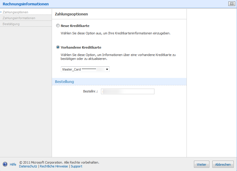 Die häufigste Bezahlmethode für die Microsoft Online Services ist die Kreditkarte. Wie kann diese Bezahlmethode aktualisiert werden?