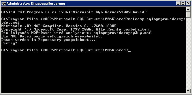 Wenn das entsprechende MOF File im SQL Verzeichnis vorhanden ist, kann das Problem so behoben werden: