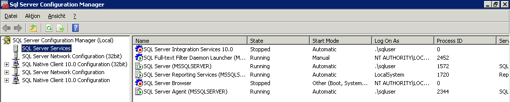 Das SQL Management Studio verbindet sich brav zum SQL Server Dienst und dieser läuft. Gut, der Database Mirror arbeitet wieder… aber: