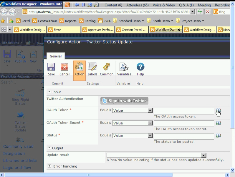 Besonders schön ist die Lösung eines Partners, der sowohl Daten aus dem Datamarket als auch solche aus Social Media Kanälen in seinen SharePoint Workflow integriert.