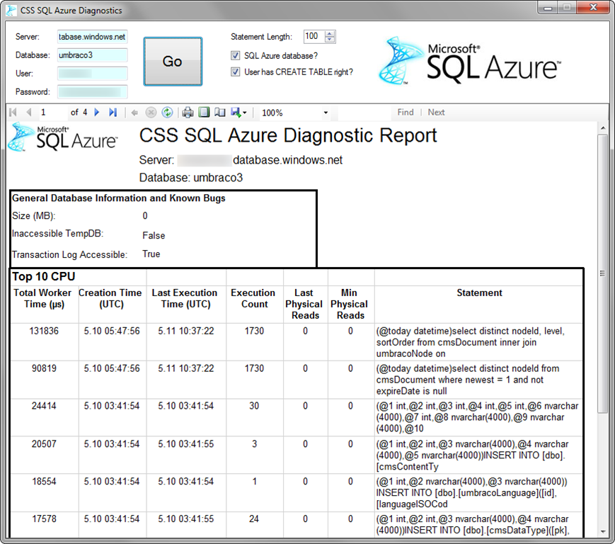 Frisch für alle SQL Azure Anwender: Im Blog mit dem unglaublich kurzen Namen “Official team Web Log for Microsoft Customer Service and Support (CSS) SQL Support” (ok, die Kurzform ist CSS SQL Server Engineers) wurde ein neues Tool veröffentlicht, das