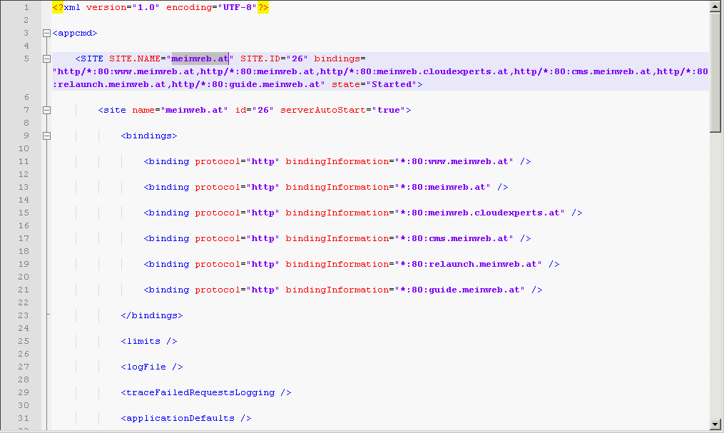 appcmd list site /name:meinweb.at /config /xml > C:\Temp\meinweb.xml