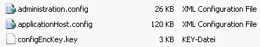 Als Ergebnis werden im Exportverzeichnis diese drei Files erstellt. Die .config Dateien sind lesbar und änderbar, das .key File enthält das verschlüsselte Kennwort.