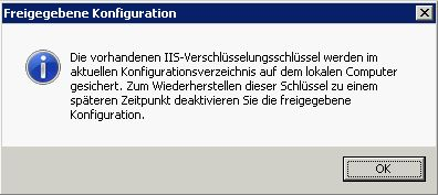 OK. Bestätigen Sie die Informationsmeldung (die aktuellen IIS Keys werden gebackupt):