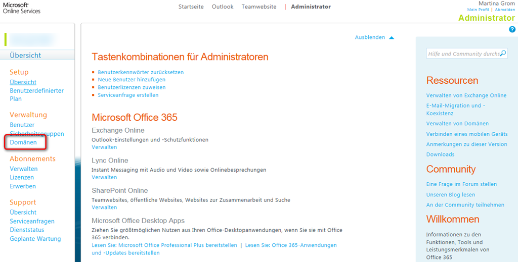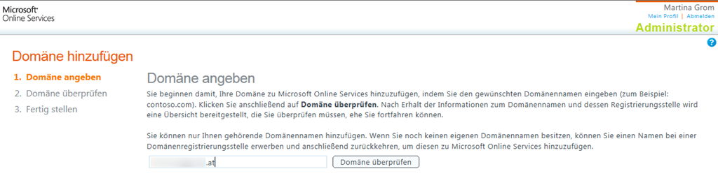 Mit dem neuen Office 365 ist es besonders einfach, eigene Domains einzubinden. Damit entfällt einerseits der lange Subdomainname username@subdomain.onmicrosoft.com, andererseits können Sie damit gleich Online gehen. Hier eine Kurzanleitung, wie Sie am schnellsten Ihre eigene Domain einbinden: