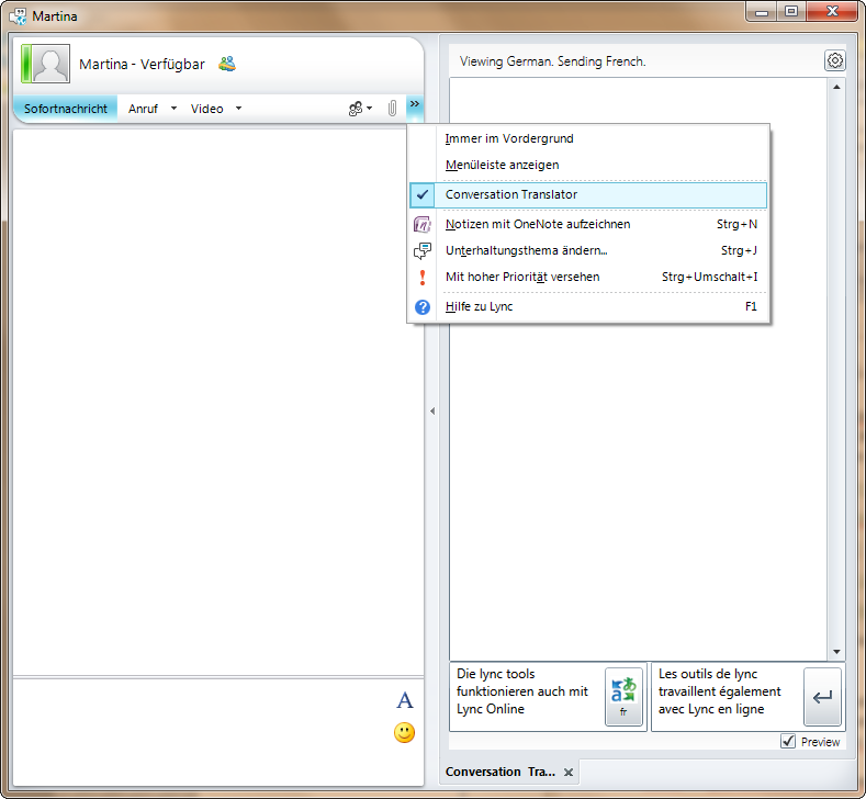 Wie können Sie die Tools einbinden? Zuerst hier downloaden und installieren. Danach die Unterhaltung mit dem Gegenüber starten und die Sprache der Übersetzung wählen.