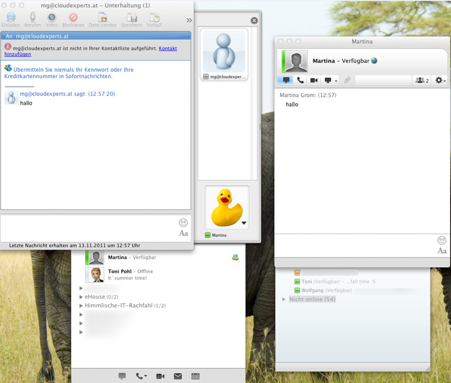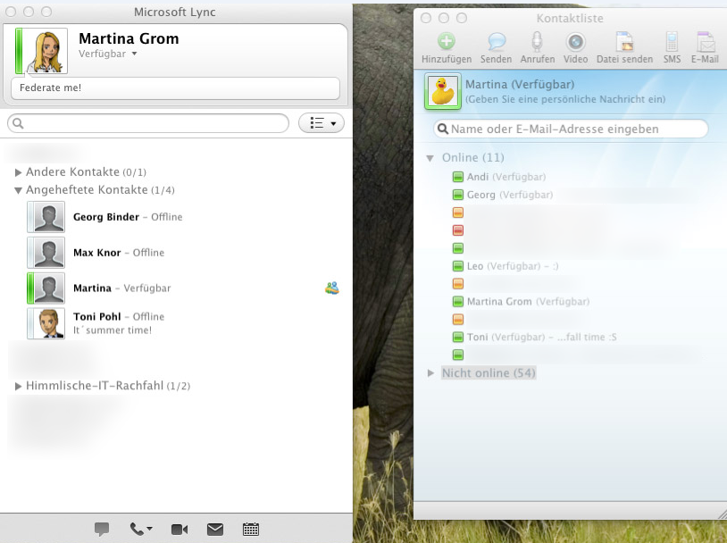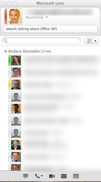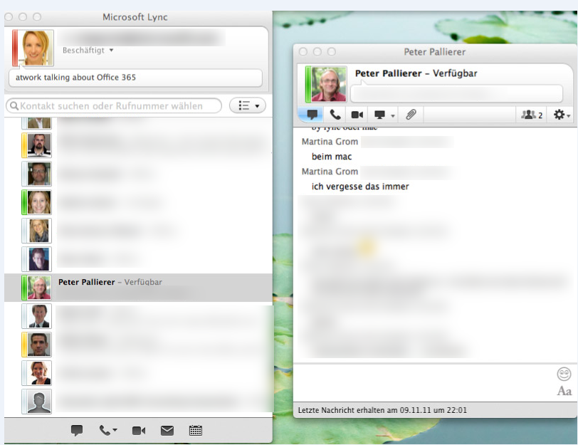 Da heute Sonntag ist und alle meine Kontakte offline waren, habe ich mich zu einem Selbstgespräch entschieden: einmal über Lync for Mac einmal im Live Messenger: