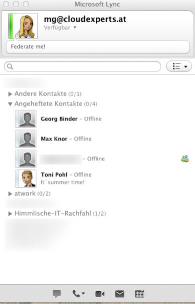 Auf OK klicken und anmelden. Schon sind alle Kontakte da, natürlich auch jene, die wir über eine Federation bereits zu unserem Lync Online hinzugefügt haben und auch die Live Messenger Kontakte, die hinzugefügt wurden.