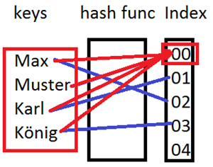 Angreifer können mit speziell präparierten HTTP-Requests eine Hash-Tabelle mit einer großen Zahl von Werten befüllen, deren Keys in demselben Hash-Code aufgelöst werden – damit sinkt die Performance der HashTable auf eine simple Linked List. Das kann bei repetitiven Requests zu einer Überlastung des Webservers führen, sinngemäß so: