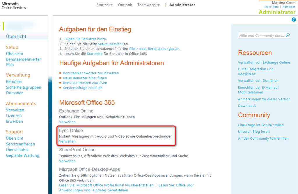 Sobald Sie dies gemacht haben, können Ihre Benutzer den Lync Client downloaden und installieren. Diesen finden Sie auf der Startseite von Office 365: