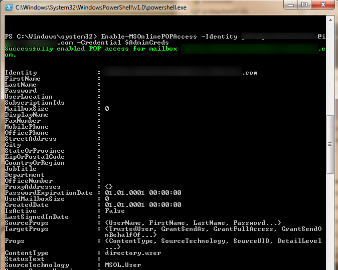 Enable-MSOnlinePOPAccess -Identity <String> -Credential <PSCredentials>