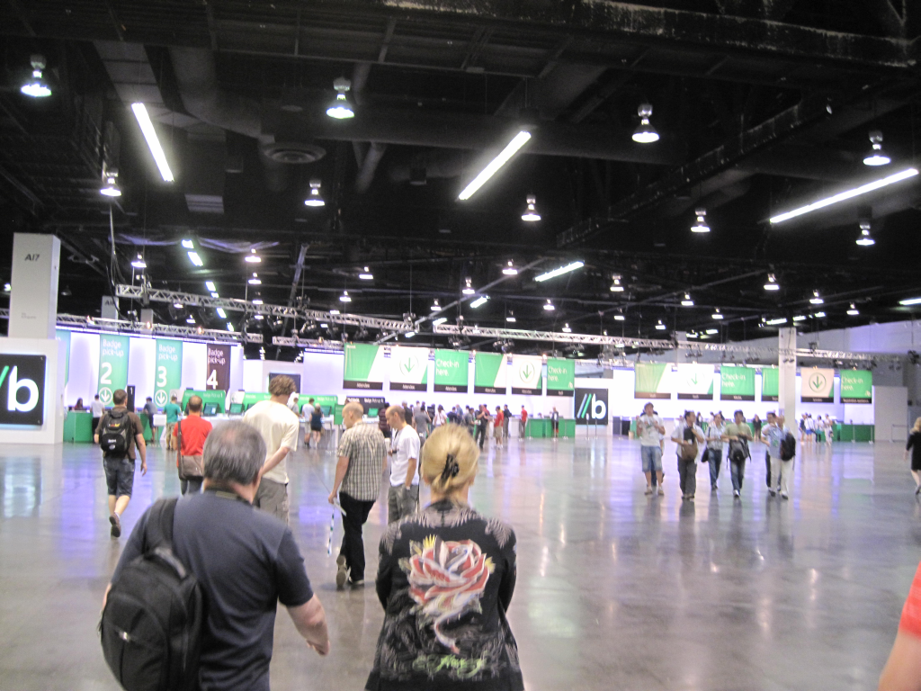 Mittlerweile sind die meisten Teilnehmer (zumindest aus Nicht-US) bereits eingetroffen, so auch ein Großteil der teilnehmenden Österreicher. Wie immer bei so großen Konferenzen ist es gut, die Registrierung schon am Vortag zu machen – da gibt es noch keine Warteschlangen. Mit dem ausgedruckten Barcode und nachfolgendem ID-en ging das auch problemlos.