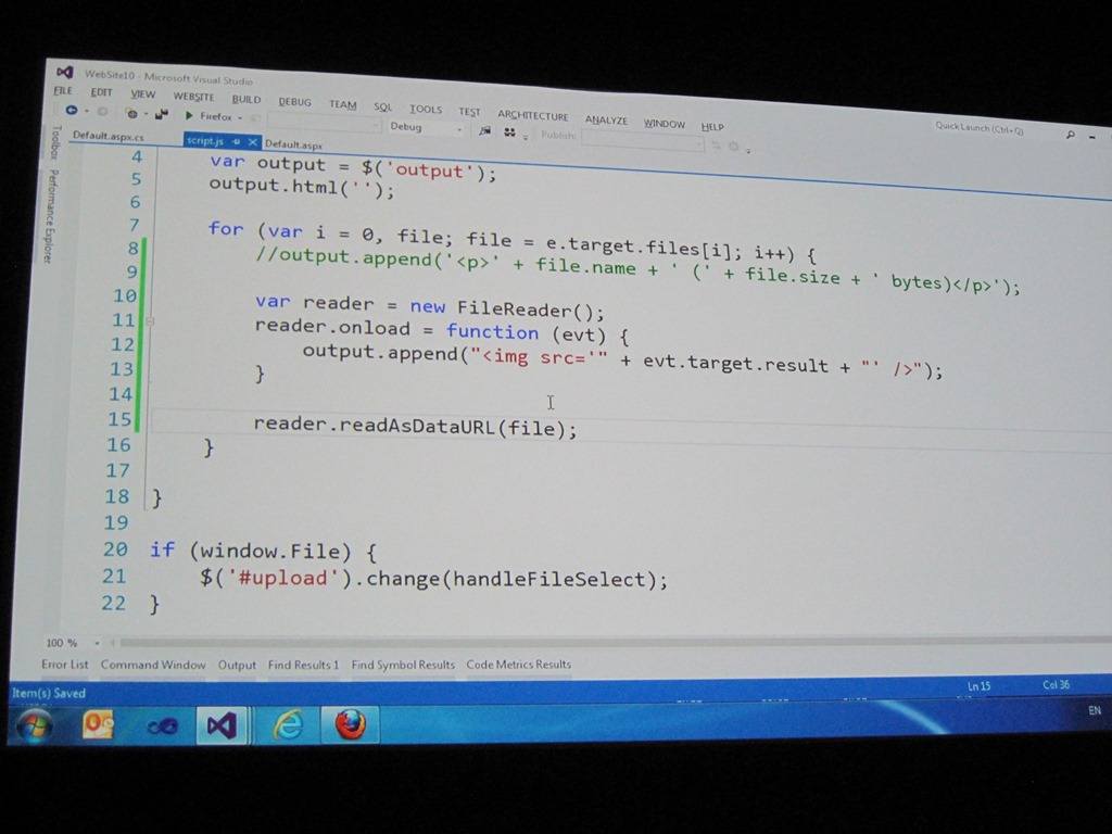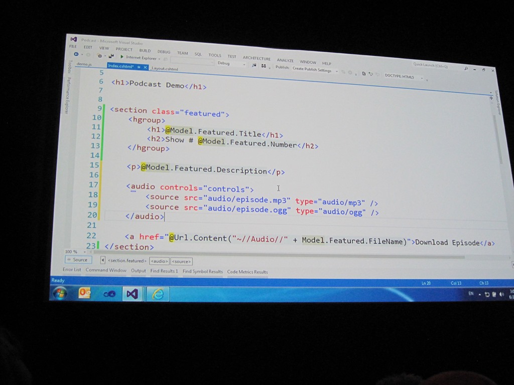 Mads zeigt, wie in VS 2012 (Beta) eine kleine HTML 4.01 Seite auf HTML5 umgebaut wird: