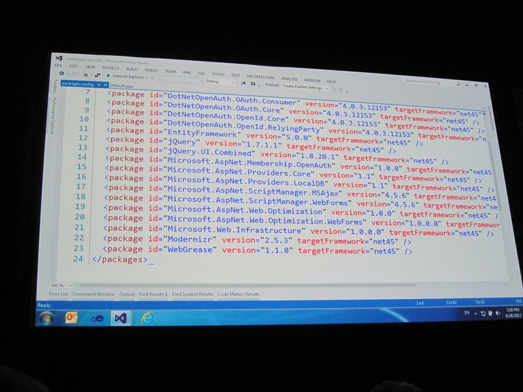 Mit einem neuen ASP.NET 4.5 Website-Projekt in VS kommen auch schon ein ganzer Haufen an NuGet Packages mit: