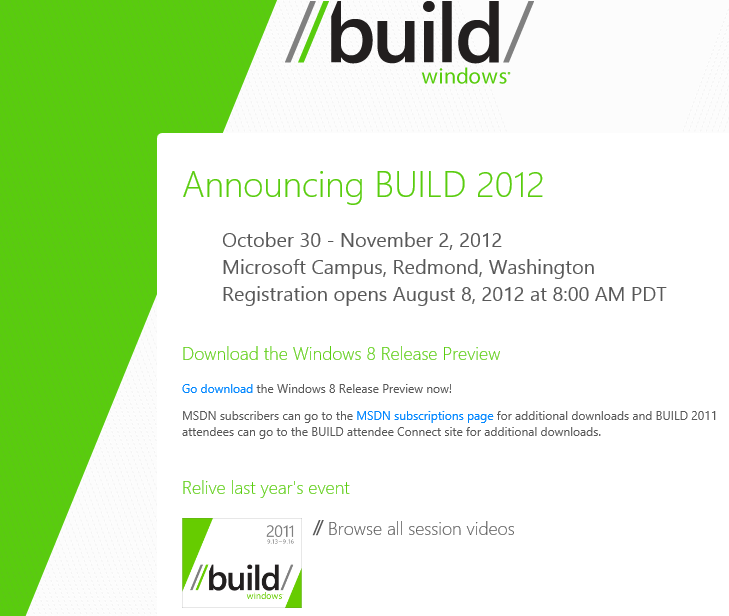 Die BUILD-Konferenz 2012 wurde erst vor kurzem angekündigt. Wie auch letztes Jahr wird es spannend.