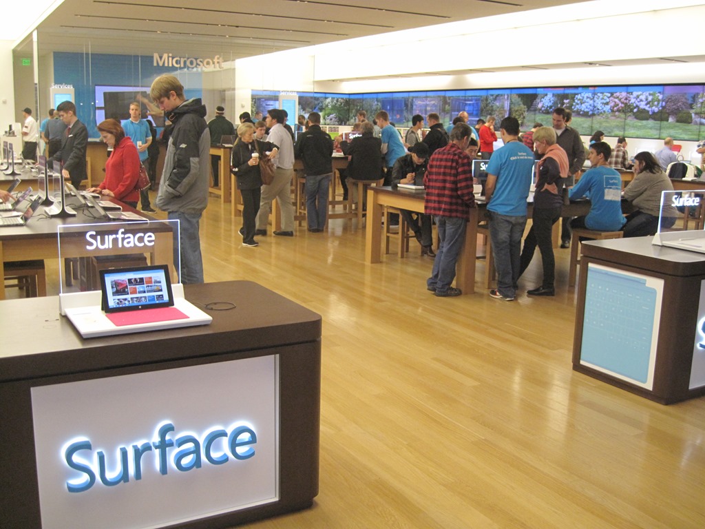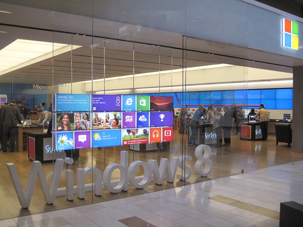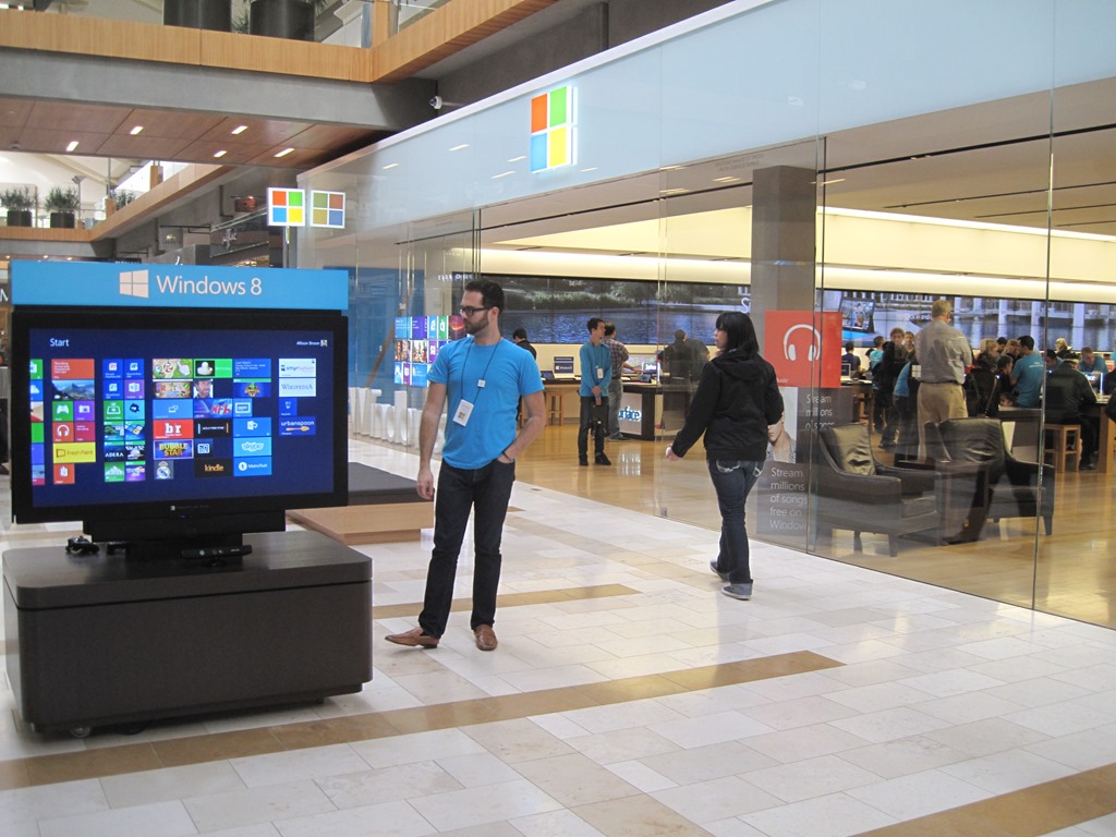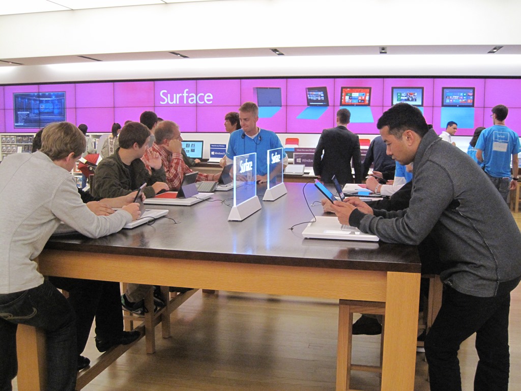 Der Microsoft Store im Nachbarort Bellevue (wo die meisten Build-Teilnehmer untergebracht sind) präsentiert sich ganz im Motto von Windows 8 und Microsoft Surface.