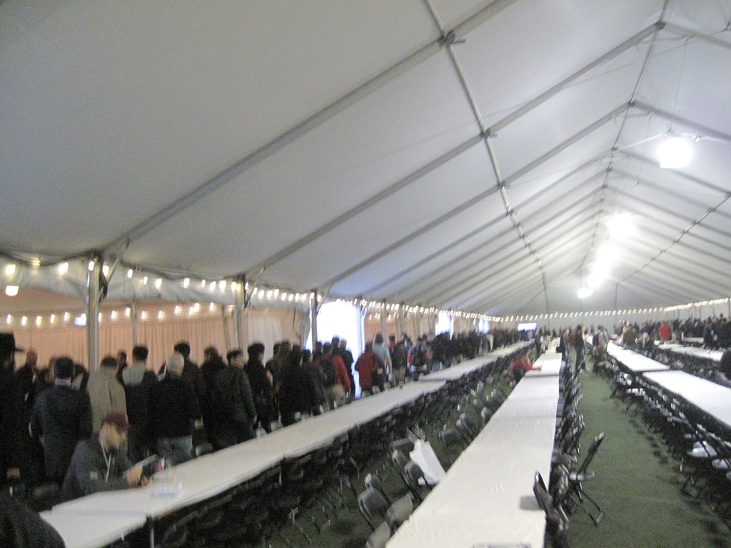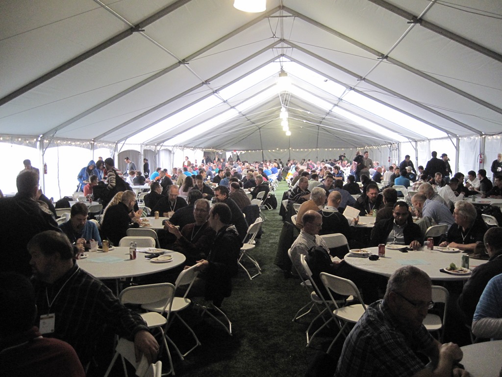 Die Keynote findet in einem eigens aufgebauten, beheizten Zelt auf einem Football-Feld am Campus statt.