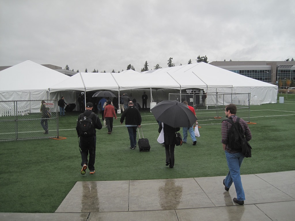 Die meisten Teilnehmer dachten anscheinend, dass es eine gute Idee ist, sich am Nachmittag des Vortages anzumelden… so standen hunderte Menschen zweimal um den Block von Building 92 Schlange. Von dort gings dann direkt zur Welcome-Reception.