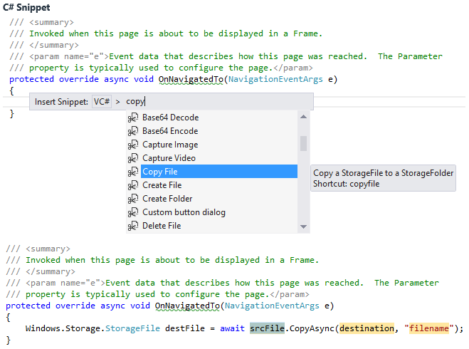 Eine praktische Sache (angeblich soll es ja Entwickler geben, die ohne IntelliSense und ohne Snippets gar nicht mehr programmieren wollen… )!